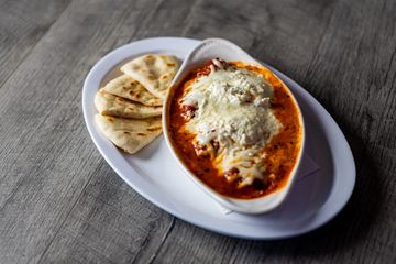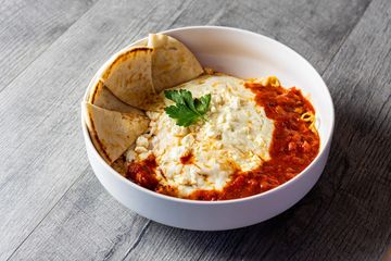 Made with meat sauce and mozzarella cheese. Served with pita bread.