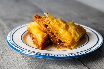 Shredded baklava with walnuts, house made custard and topped with cinnamon.