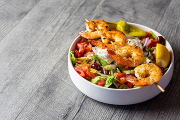 Your choice of lamb, chicken, or salmon (add $4) topped with lettuce, tomatoes, onions & parsley, Greek dressing & tzatziki, paired with chips, and served with warm pita.